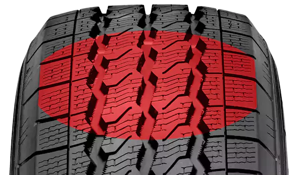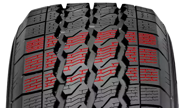 High density of zig-zag sipes help increase the grip on snow and slush which provides excellent